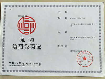 你好,歡迎訪問安平縣旭燦金屬絲網(wǎng)制品有限公司!